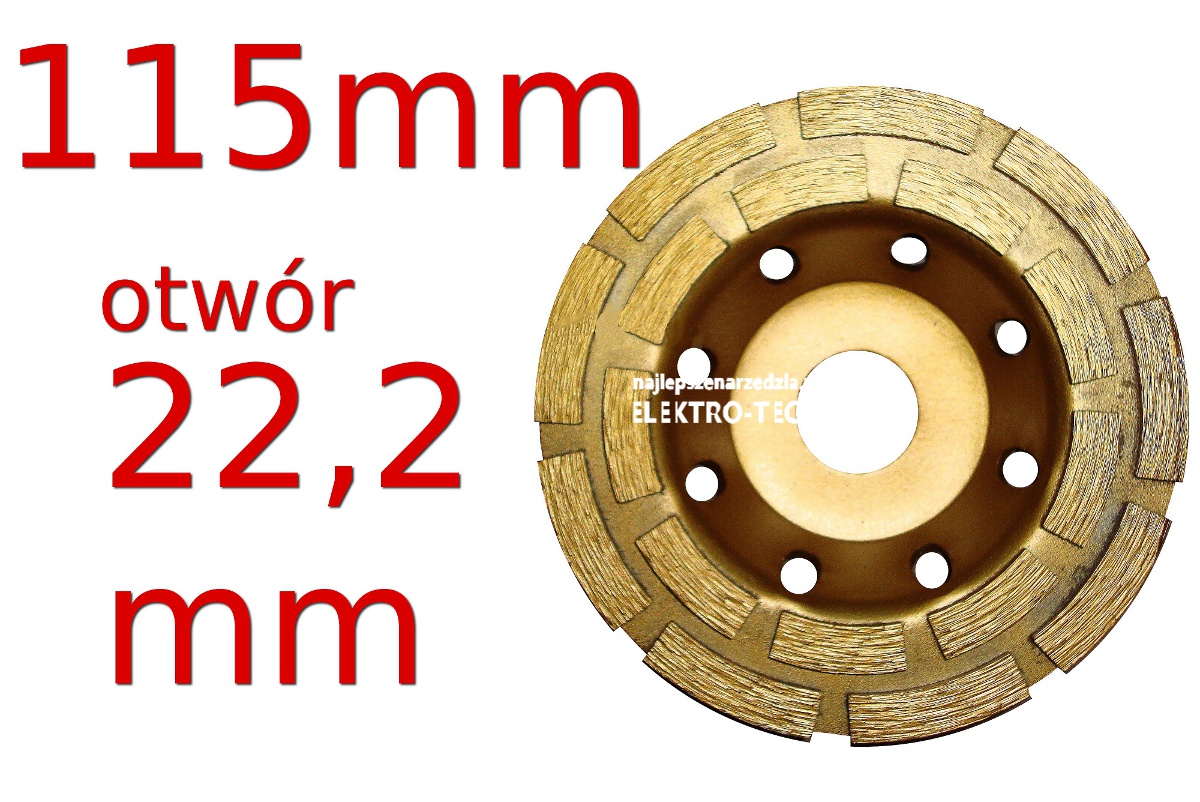 Charakterystyka: - warstwa diamentowa 3 mm - średnica zewnętrzna 115 mm/22,2 mm