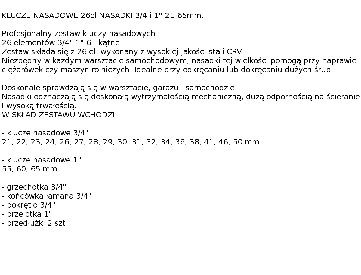 26ELEM ZESTAW KLUCZY NASADOWYCH 3/4'',1'' 6-KĄTNE SILVER
