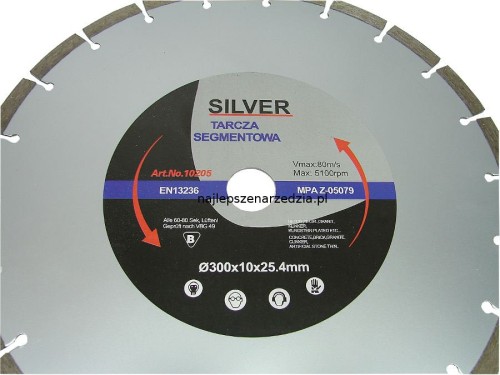Przedmiotem aukcji jest TARCZA DIAMENTOWA SEGMENTOWA 300 x 25,4 SILVER DO BETONU.