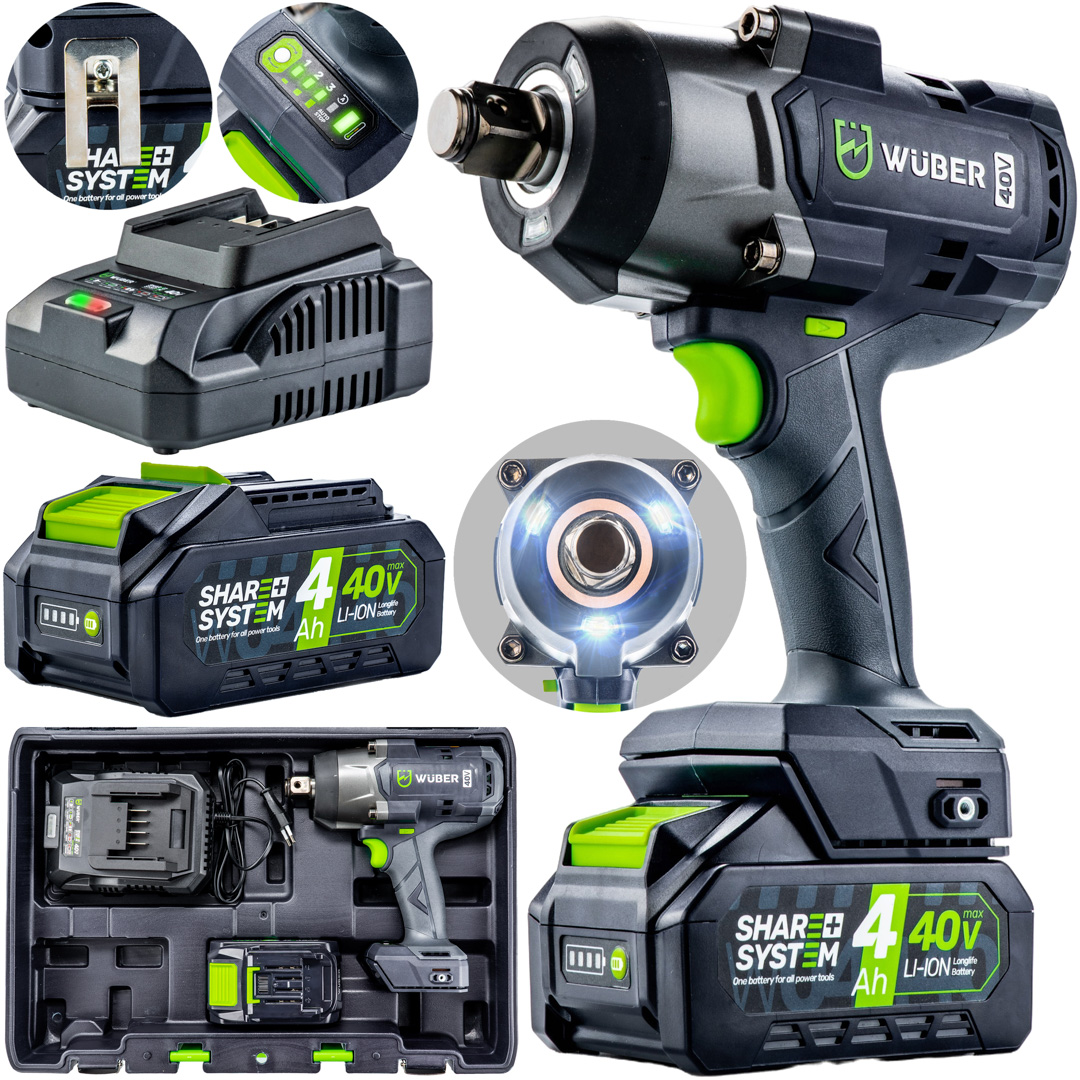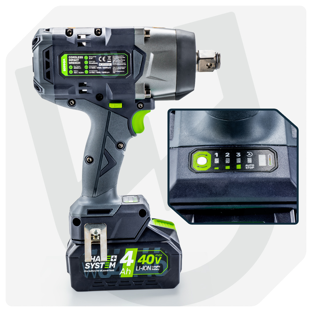Akumulatorowy klucz udarowy 40V 2000Nm 3/4" WUBER z silnikiem bezszczotkowym
