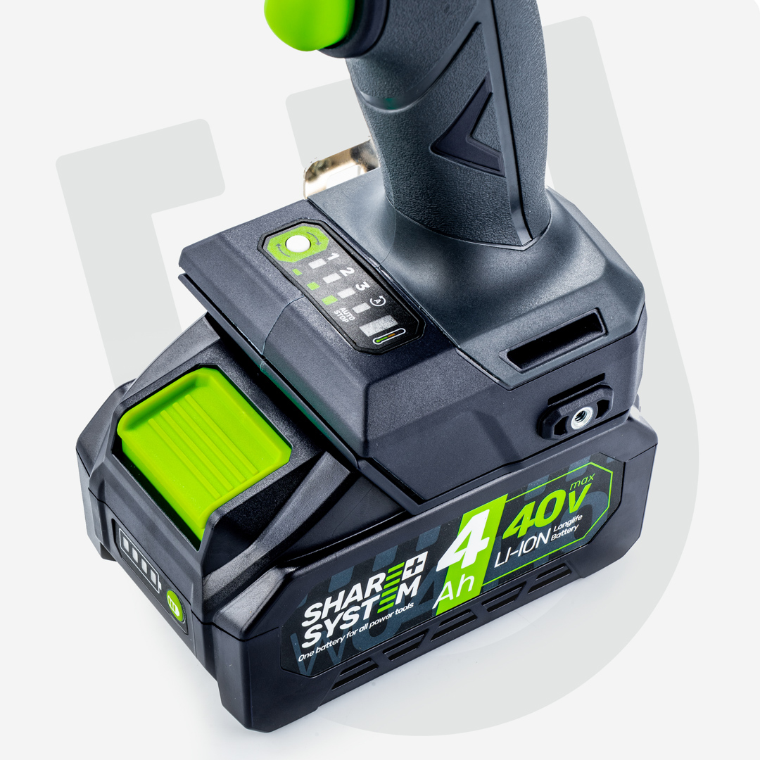 Bezszczotkowy silnik zasilany napięciem 40V generuje potężny moment obrotowy 2000 Nm, zapewniając skuteczność przy odkręcaniu zapieczonych śrub w maszynach rolniczych i ciężarowych.