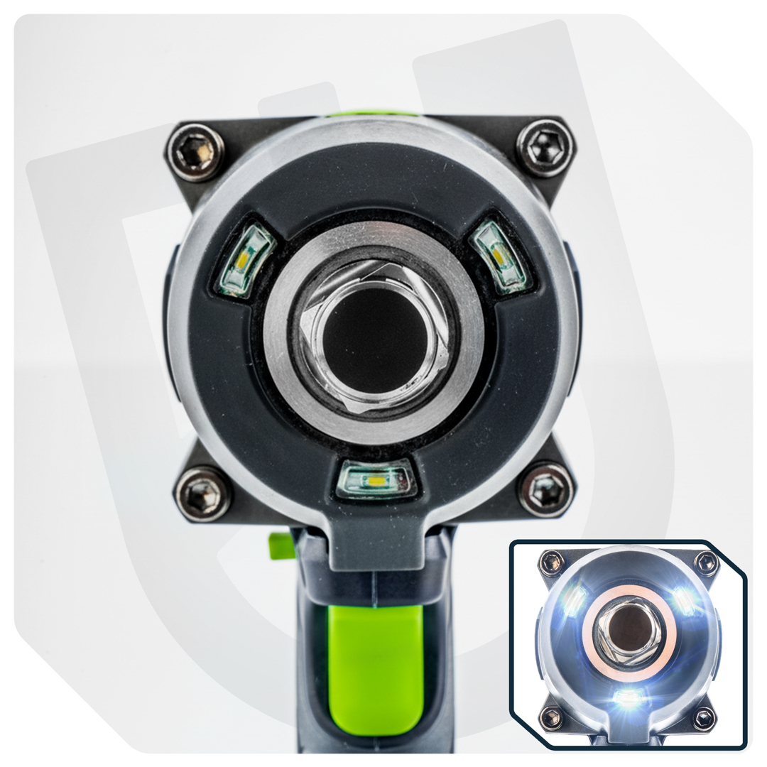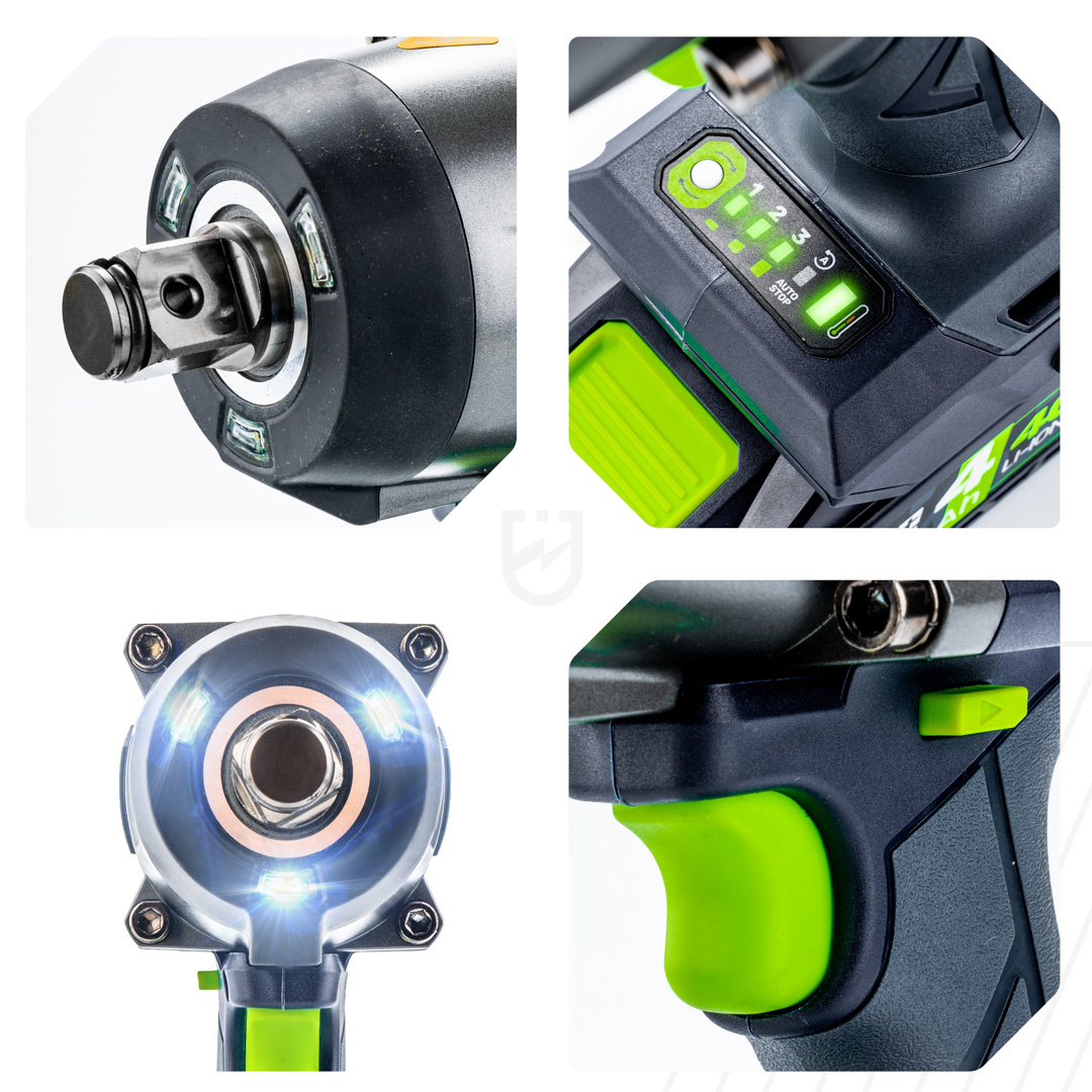 Narzędzie wyposażono w inteligentny system Smart-Loosening, który automatycznie zatrzymuje udar po poluzowaniu nakrętki, zapobiegając jej zgubieniu lub uszkodzeniu gwintu.