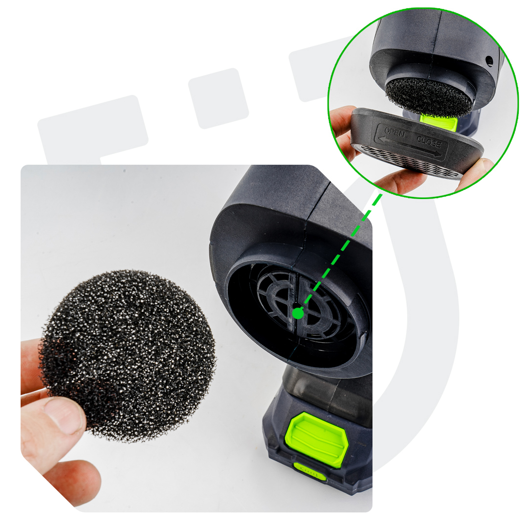 -Zintegrowany filtr gąbkowy chroniący silnik przed pyłem i mgłą lakierniczą