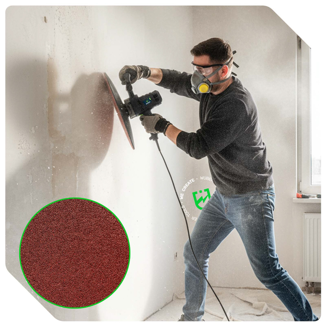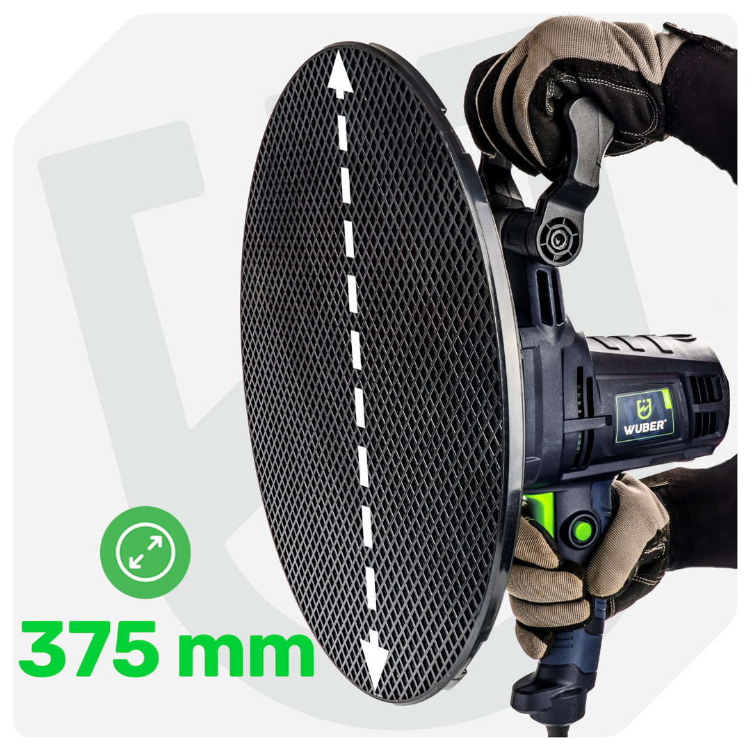 Tarcza o średnicy 375 mm szybko wygładza duże powierzchnie.