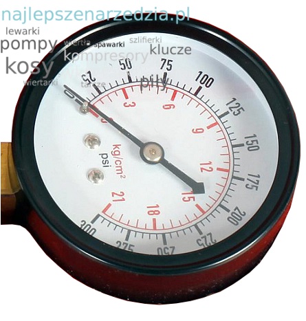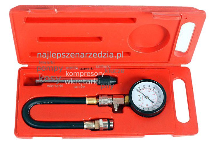 Tester służy do badanie ciśnienia sprężania w silnikach z zapłonem iskrowym. Konstrukcja urządzenie pomiarowe, manometr analogowy o skali 3 - 21 Bar (50-300 PSI), umieszczony w korpusie adaptera. Manometr wyposażony w dwa rodzaje końcówek: stożkową, gumową, która uszczelnia gniazdo świecy zapłonowej oraz końcówkę wkręcaną w gniazdo świecy (M14 lub M18).