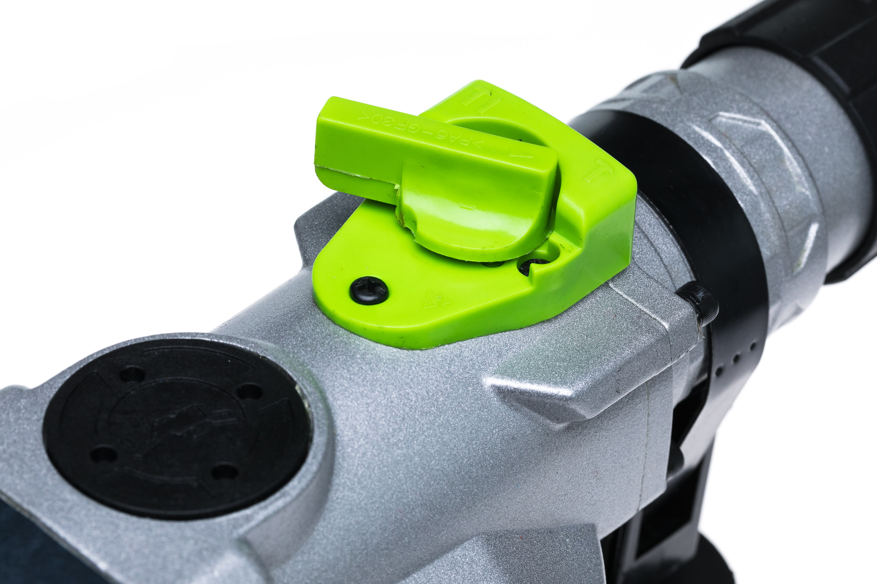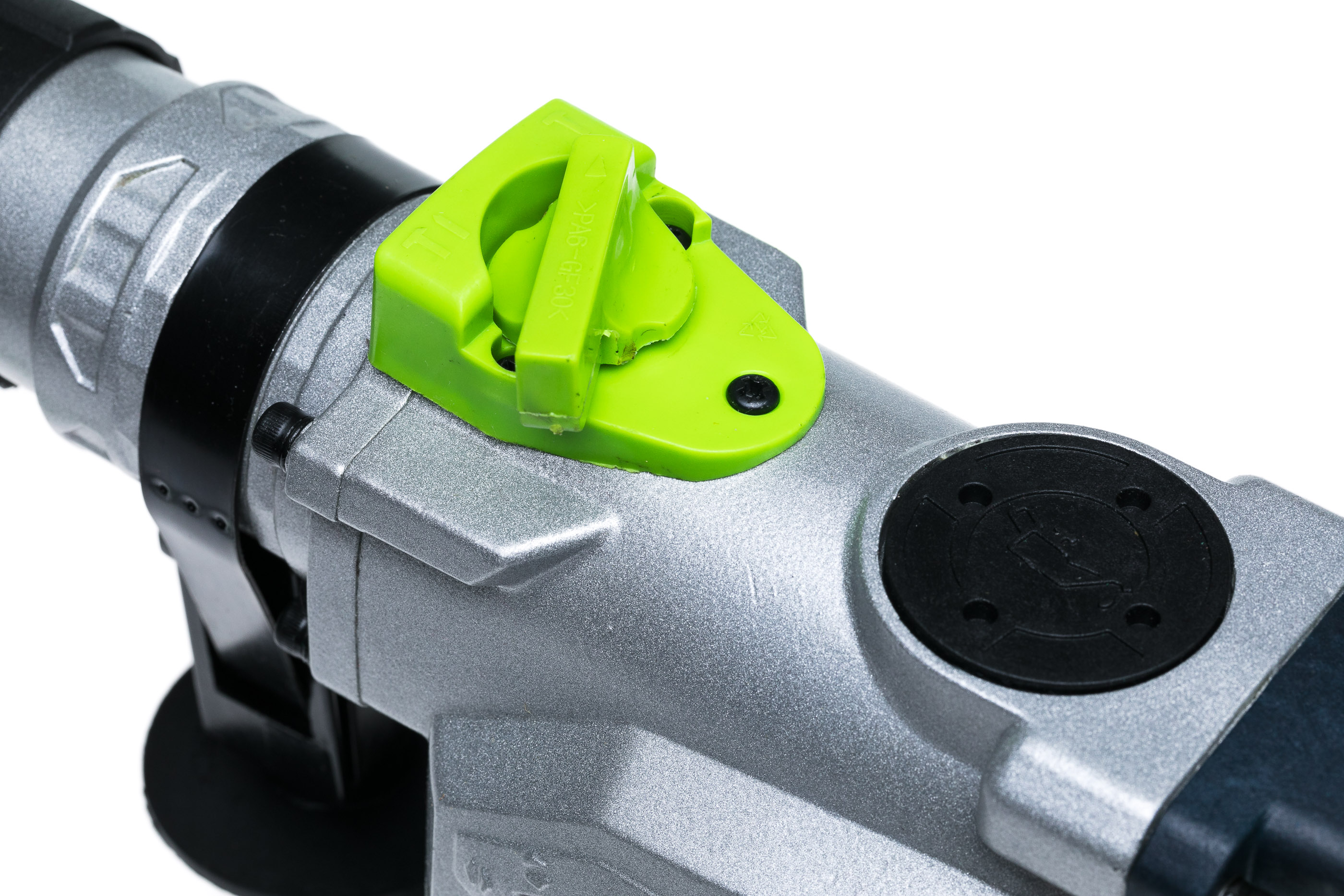 W rękojeści znajduje się regulacja obrotów. Im mocniej spust zostanie wciśnięty tym większe będą obroty młotowiertarki.