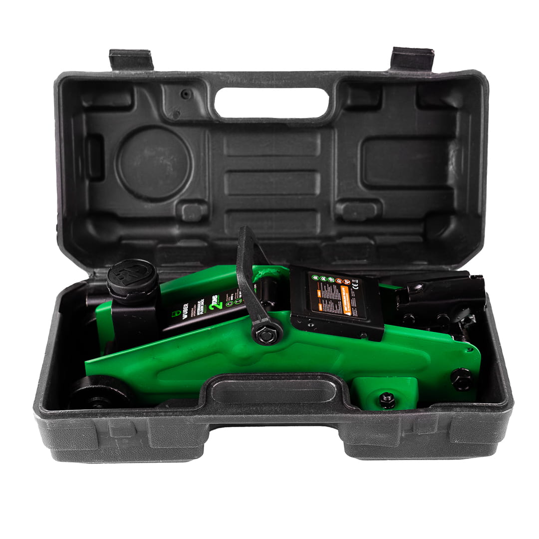 Podnośnik umieszczono w solidnej walizce z tworzywa sztucznego, która ułatwi transport oraz przechowywanie.