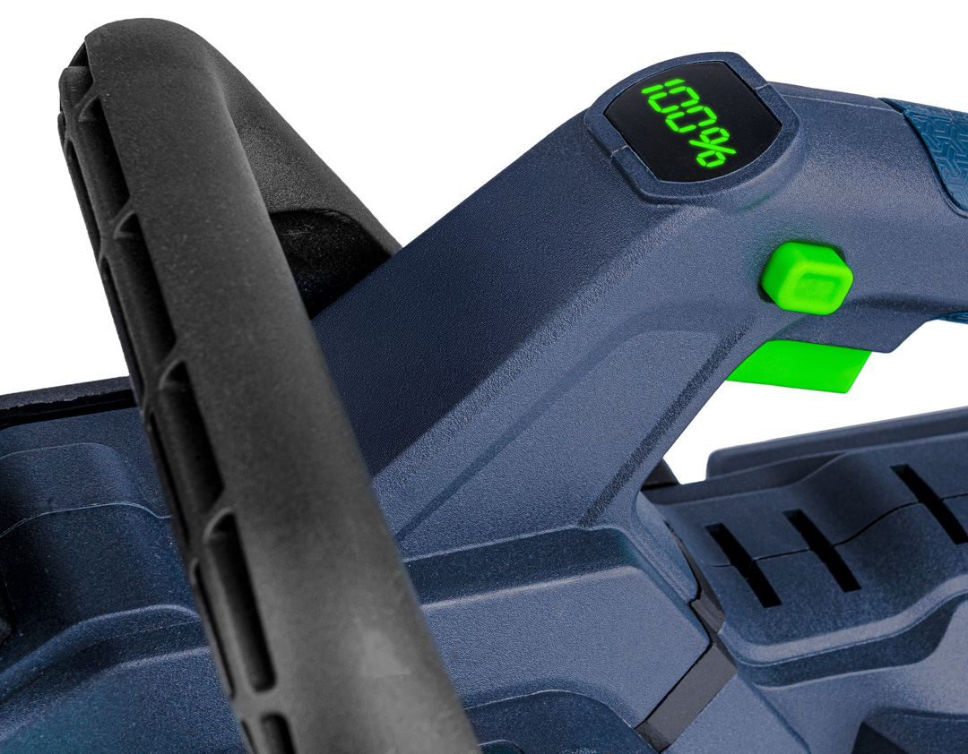 Poziom naładowania baterii jest widoczny, dzięki intuicyjnemu wyświetlaczowi na grzebiecie piły, który pokazuje stan naładowania akumulatora w czasie rzeczywistym (0-100%)