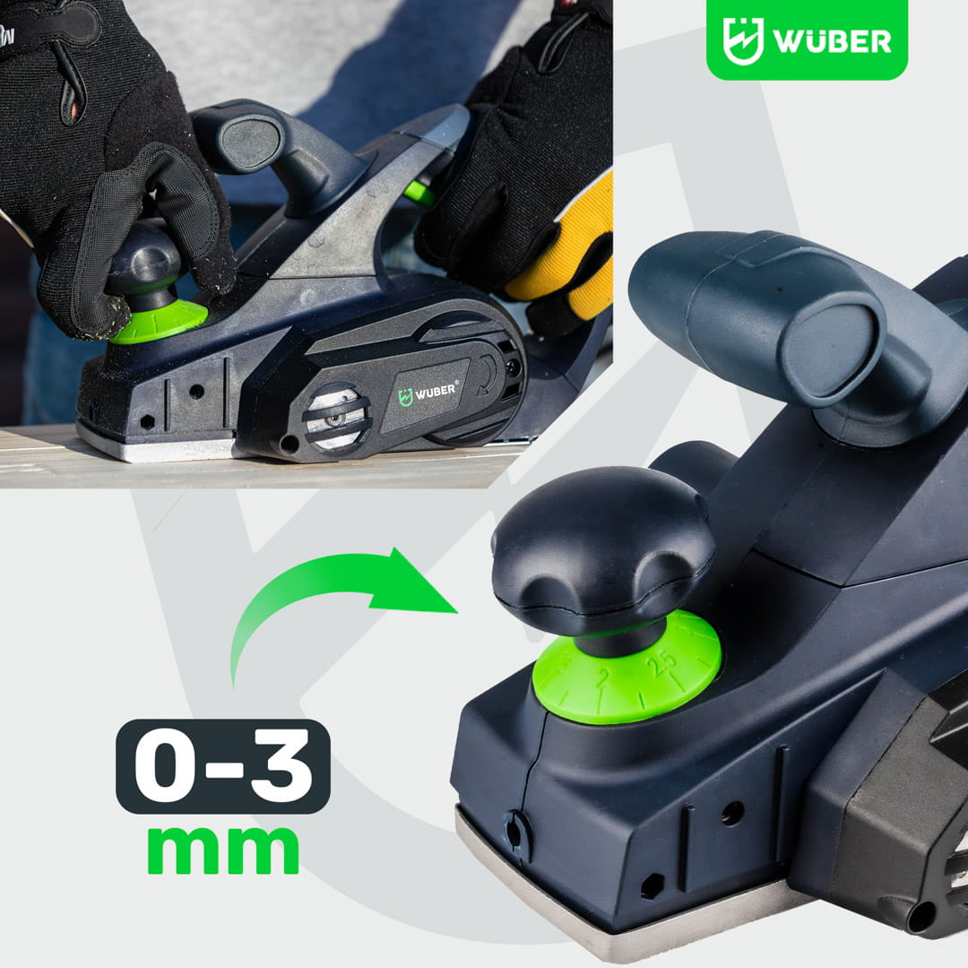 Dużym atutem strugu jest regulowana głębokość wręgu od 0-3mm.