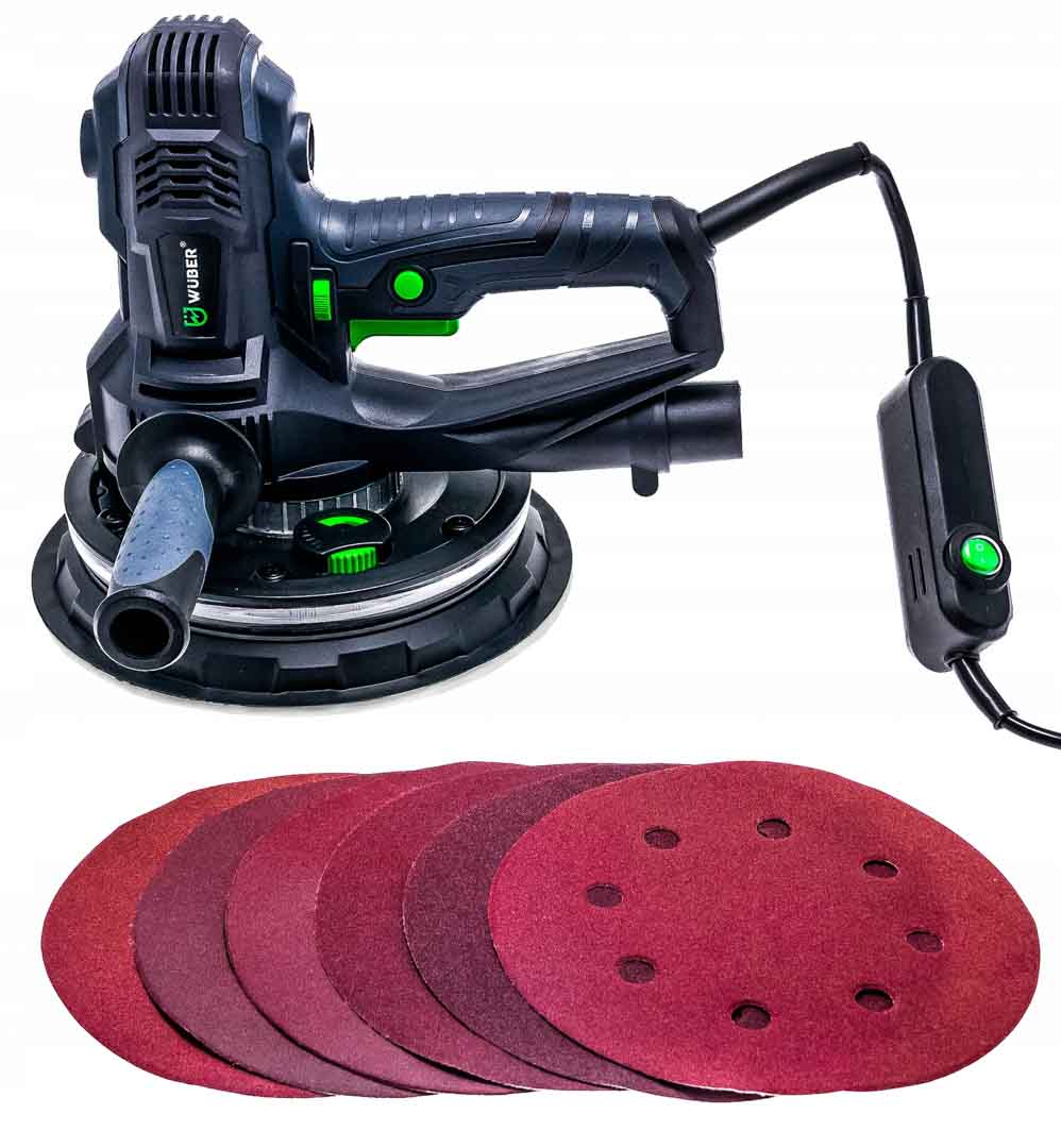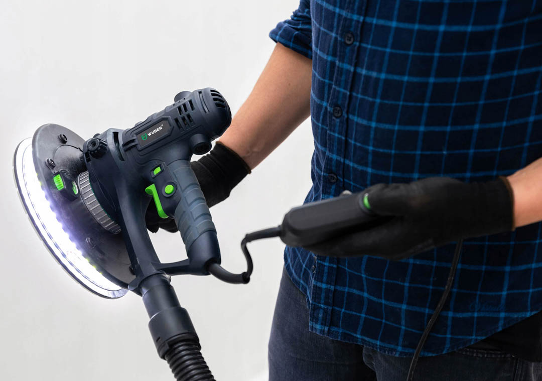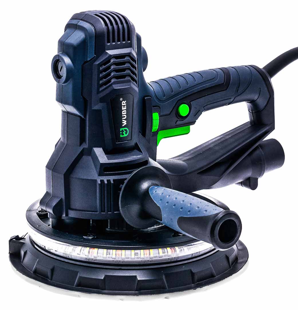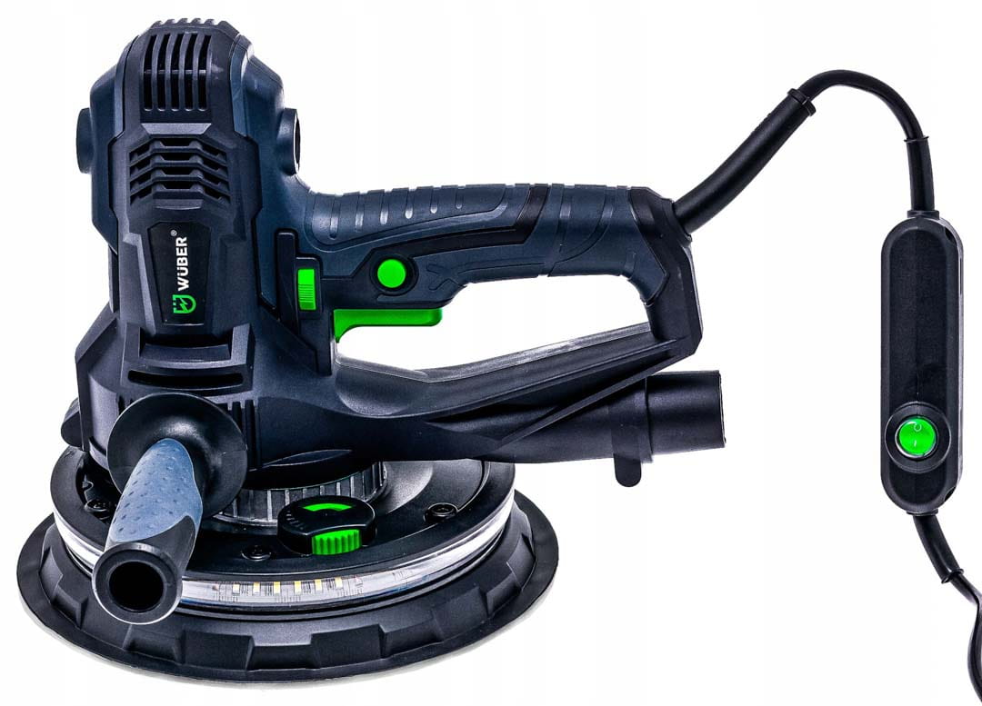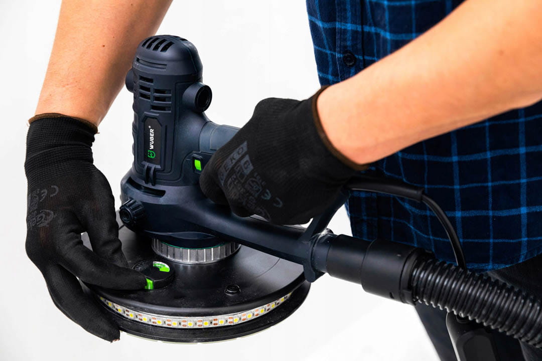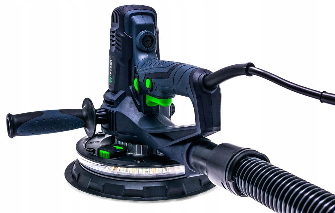 Szlifierka do gładzi to proste w obsłudze urządzenie stosowane powszechnie do szlifowania gładzi oraz gipsu. Intuicyjna i prosta obsługa sprawia, że sprawdzi się idealnie podczas szlifowania ścian i sufitów oraz powierzchni pokrytych gładzią szpachlową. Podświetlenie DUAL LED pomaga w dotarciu wszelkich zgrubień oraz sprawdzeniu, czy szlifowana ściana posiada idealnie gładką powierzchnię. Urządzenie posiada wolny start oraz płynną regulację obrotów. Regulacja odbywa się przy pomocy pokrętła zamontowanego na uchwycie urządzenia w zakresie od 1-6. Dopasowanie siły ciągu pozwala na odpowiednie ustawienie ciśnienie ssania pyłu do odkurzacza. Pokrętło znajduje się w dolnej części urządzenia. Zdejmowana osłona do szlifowania narożników idealnie sprawdzi się podczas precyzyjnych szlifów. Blokada włącznika pozwala na nieprzerwaną pracę ze szlifierką. Istnieje możliwość zamocowania rączki z obu stron szlifierki- to świetne rozwiązanie dla osób lewo oraz praworęcznych. Szlifierka przystosowana jest do pracy z odkurzaczami warsztatowymi. W zestawie znajduje się również worek na pył.
