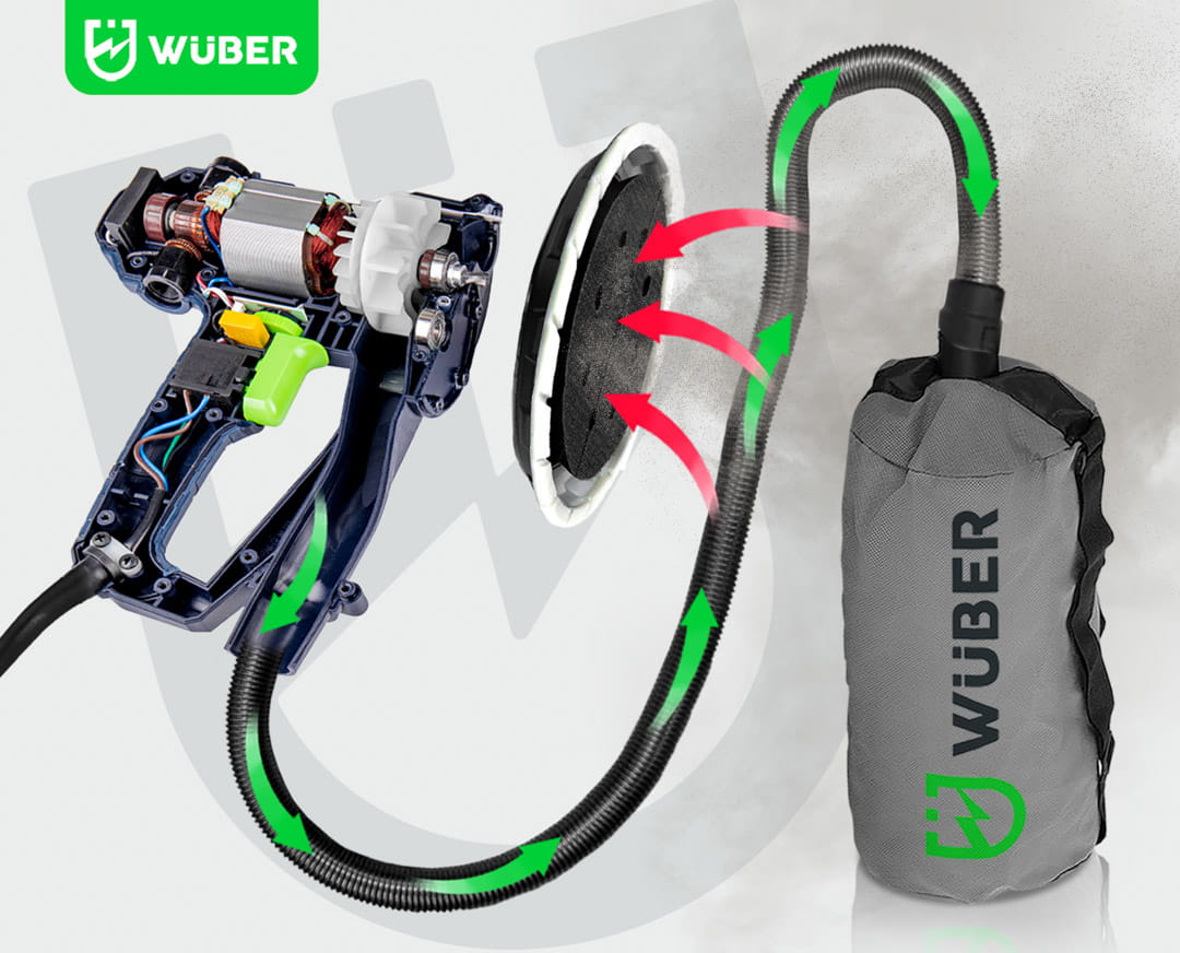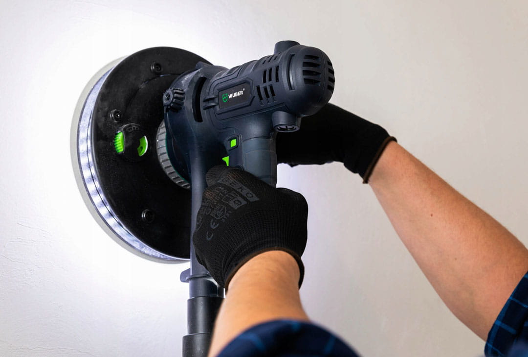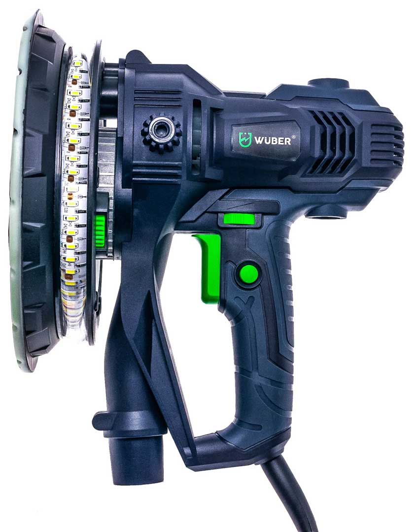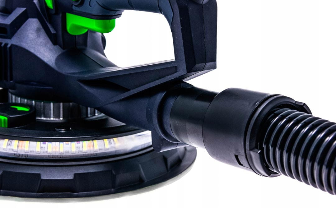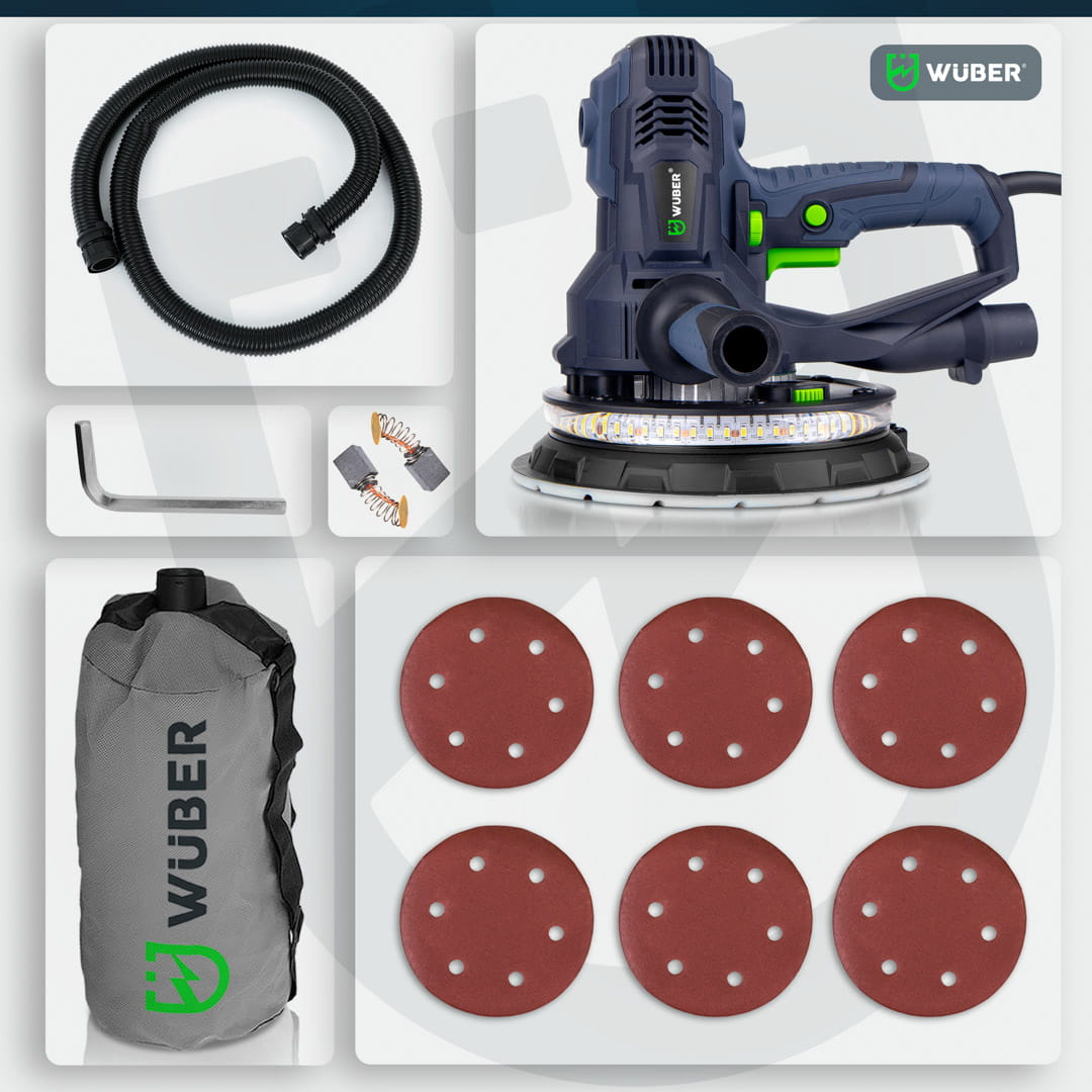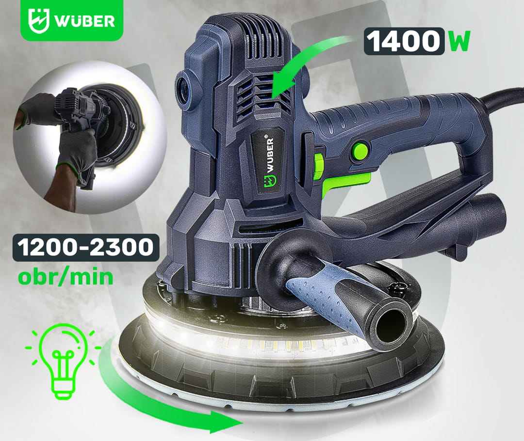 Szlifierka do gładzi to proste w obsłudze urządzenie stosowane powszechnie do szlifowania gładzi oraz gipsu. Intuicyjna i prosta obsługa sprawia, że sprawdzi się idealnie podczas szlifowania ścian i sufitów oraz powierzchni pokrytych gładzią szpachlową. Podświetlenie DUAL LED pomaga w dotarciu wszelkich zgrubień oraz sprawdzeniu, czy szlifowana ściana posiada idealnie gładką powierzchnię. Urządzenie posiada wolny start oraz płynną regulację obrotów. Regulacja odbywa się przy pomocy pokrętła zamontowanego na uchwycie urządzenia w zakresie od 1-6. Dopasowanie siły ciągu pozwala na odpowiednie ustawienie ciśnienie ssania pyłu do odkurzacza. Pokrętło znajduje się w dolnej części urządzenia. Zdejmowana osłona do szlifowania narożników idealnie sprawdzi się podczas precyzyjnych szlifów. Blokada włącznika pozwala na nieprzerwaną pracę ze szlifierką. Istnieje możliwość zamocowania rączki z obu stron szlifierki- to świetne rozwiązanie dla osób lewo oraz praworęcznych. Szlifierka przystosowana jest do pracy z odkurzaczami warsztatowymi. W zestawie znajduje się również worek na pył.