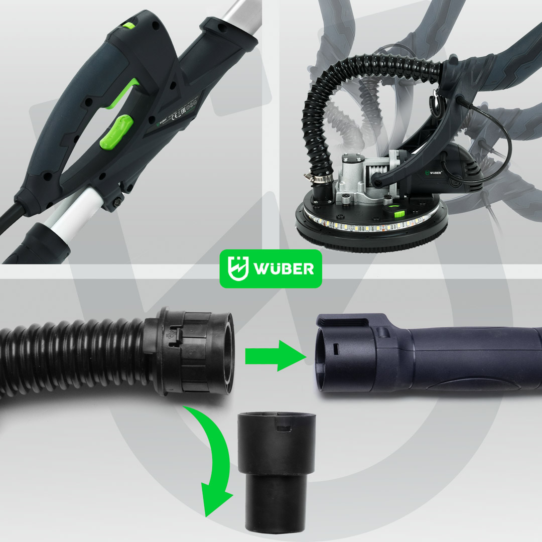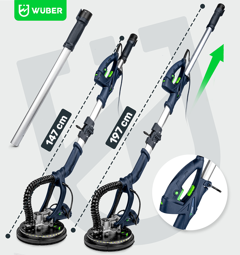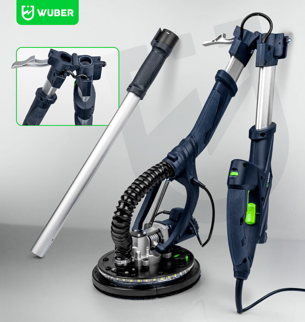 Żyrafa do gładzi WUBER to proste w obsłudze urządzenie stosowane powszechnie do szlifowania gładzi oraz gipsu. Intuicyjna i prosta obsługa sprawia, że sprawdzi się idealnie podczas szlifowania ścian i sufitów oraz powierzchni pokrytych gładzią szpachlową, remontach domowych jak i dużych budowach (duże i małe powierzchnie) i wielu innych.