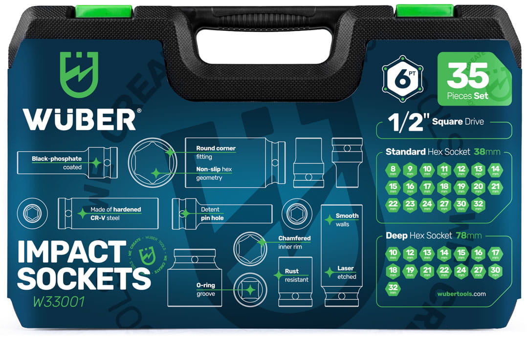 ZESTAW NASADEK UDAROWYCH 35 SZT. 1/2" 6-KĄT WUBER 33001